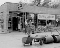 He purchased four hardware stores, and created a sporting goods department in each of them.